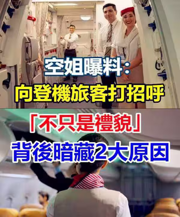 空姐曝料:向登機旅客打招呼「不只是禮貌」 背後暗藏兩大原因,網恍然大悟:難怪一直看我!