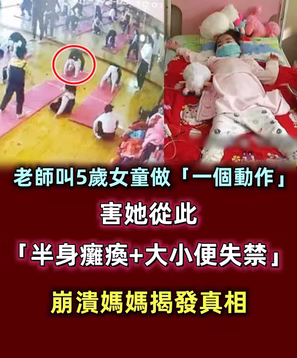 老師叫5歲女童做「一個動作」害她從此「半身癱瘓+大小便失禁」崩潰媽媽揭發真相