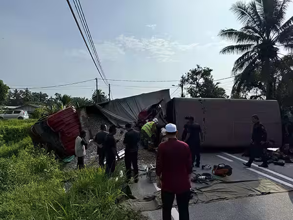 霹靂州安順消拯局於早上8時54分接獲通報,指安順奇古斯路通往雙溪南邦路段發生嚴重車禍,隨即派員趕赴現場展開救援行動。