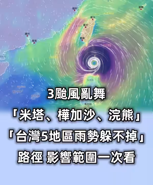 快訊/3颱風亂舞「米塔、樺加沙、浣熊」生成!「台灣5地區雨勢躲不掉」路徑、影響範圍一次看