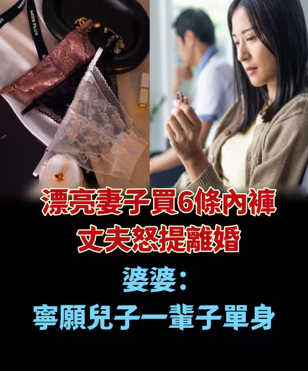 漂亮妻子買6條內褲,丈夫怒提離婚,婆婆:寧願兒子一輩子單身...