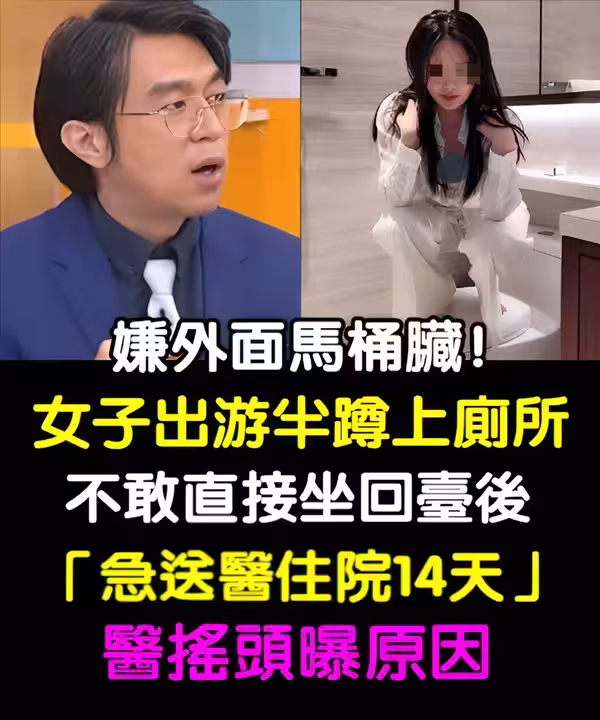然而日前,有一位女子去旅遊時就因為怕公廁髒而用「半蹲」的方式使用坐式馬桶,沒想到卻因此住院了整整14天,得不償失!
