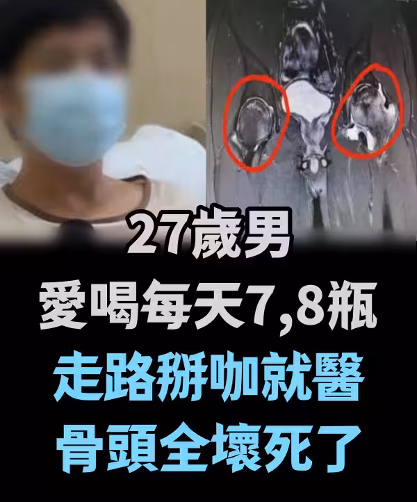 27歲男愛喝每天7、8瓶 走路掰咖就醫: 骨頭全壞死了