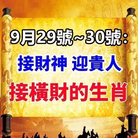 9月29號~30號:接財神 ,迎貴人,接橫財的生肖