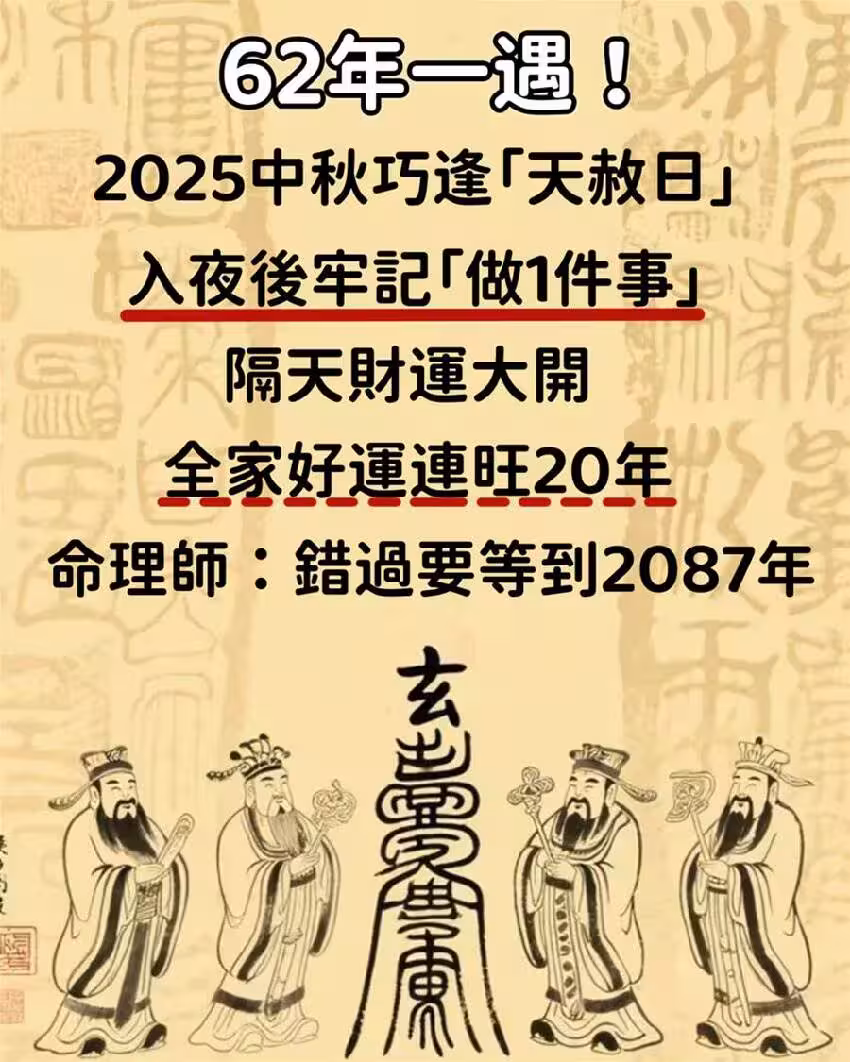 62年一遇!2025中秋巧逢「天赦日」入夜後牢記「做1件事」隔天財運大開,命理師:錯過要等到2087年