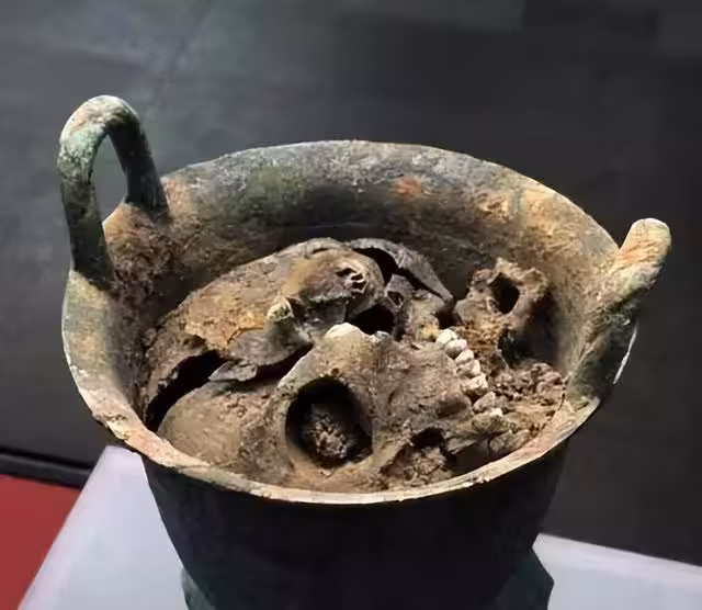 其實最叫人不安的,還不是苦難。早在甲骨文里就能看見些瘋癲的細節。據說殷商有時會讓人吃人。宴席上據說,還真有國王吃敵首以求勇氣的荒誕風景。考古也沒騙人,部分遺骨的斷面、燒痕,甚至粘附的炭末,很多專家都確信,確實有過那樣的議式。更有孕婦、兒女被一起帶走,屍體拼成怪異的姿態。這樣做,真能延年益壽嗎?還是純粹發泄絕望?