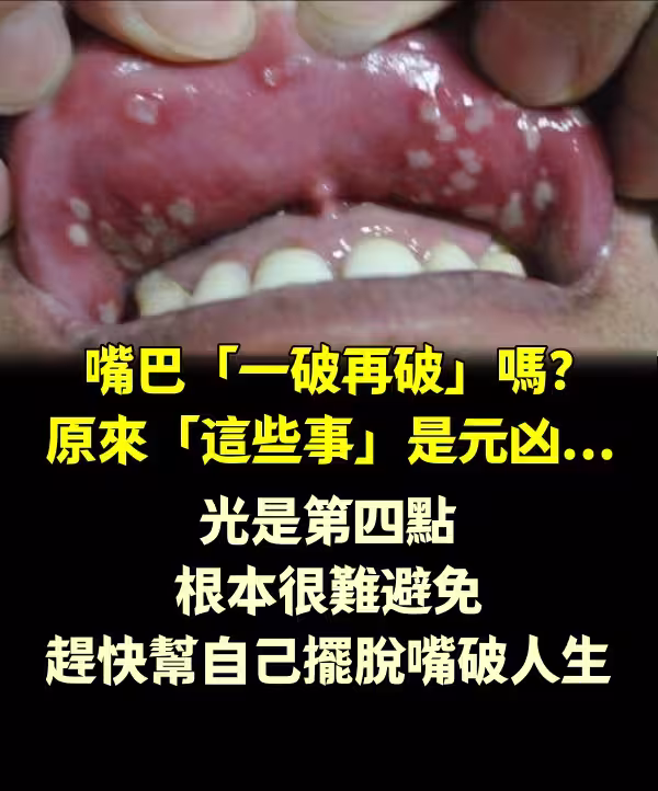 嘴巴「一破再破」嗎?原來「這些事」是元兇...光是第四點就根本很難避免,趕快幫自己擺脫「嘴破人生!」