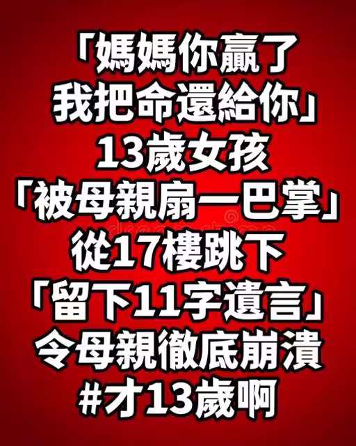 「媽媽你贏了,我把命還給你」!13歲女孩「被母親扇一巴掌」從17樓跳下,「留下11字遺言」令母親徹底崩潰 #才13歲啊