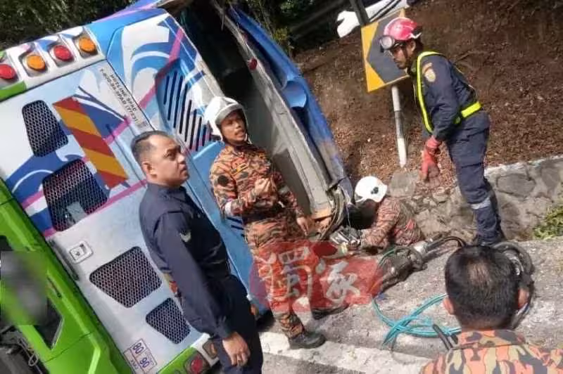 巴士翻覆後倒在路面上,附近路段暫時封鎖,因此雲頂高原上車路段暫時改為雙向通行,引發大塞車。