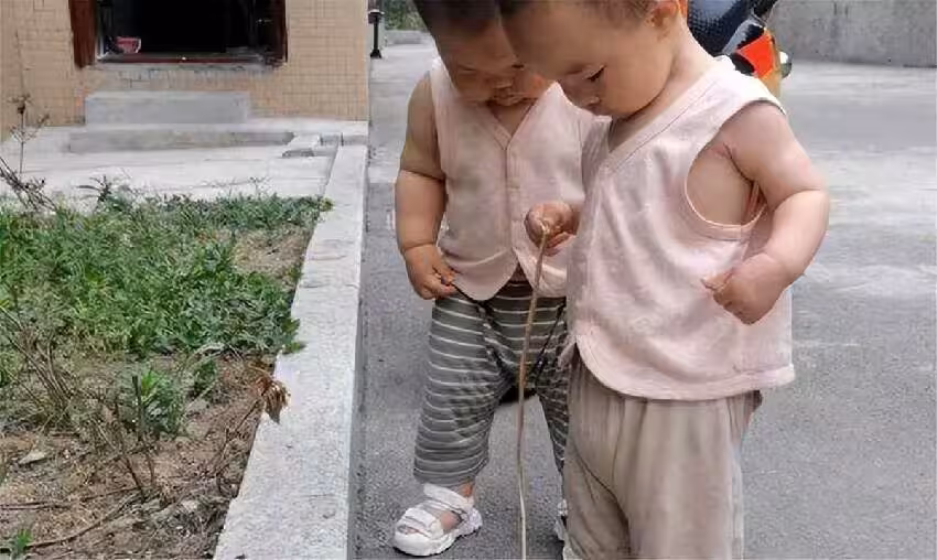 原來這對雙胞胎孩子出生後,媽媽的母乳不太夠吃,而且一個人也照顧不過來兩個孩子,所以其中一個孩子讓婆婆幫忙照看。