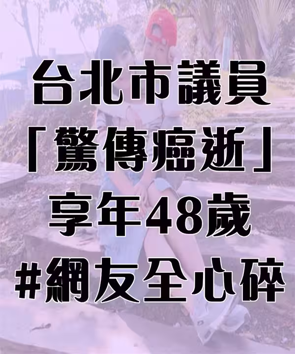 台北市議員「驚傳癌逝」享年48歲!! #網友全心碎