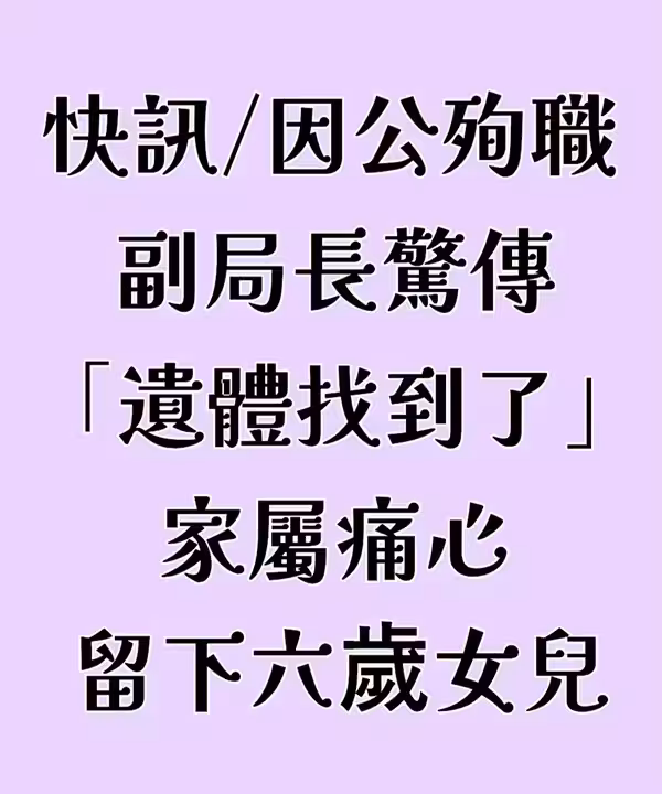 快訊 / 因公殉職!副局長驚傳「遺體找到了」 家屬痛心「留下六歲女兒」