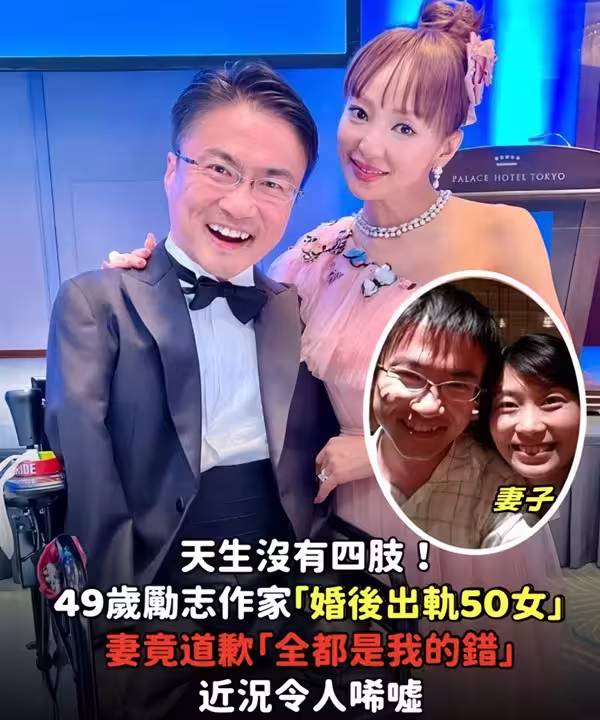 天生沒有四肢!49歲勵志作家「婚後出軌50女」妻竟道歉「全都是我的錯」近況令人唏噓!