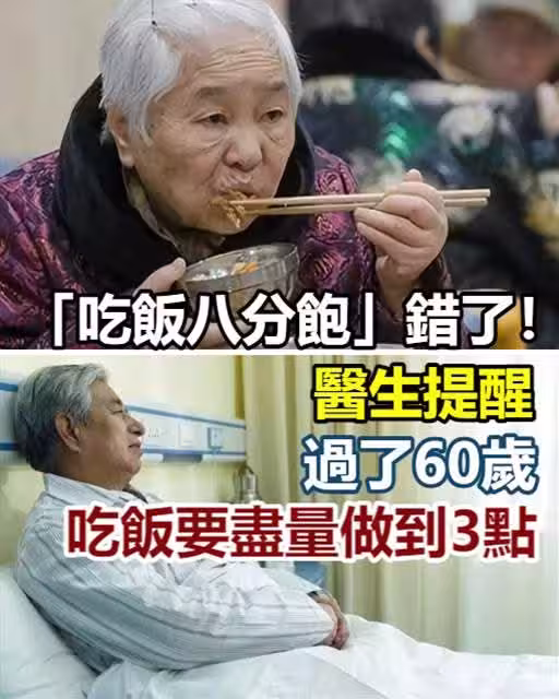 晚上「吃飯八分飽」就錯了!醫生提醒:過了60歲,吃飯要儘量做到這3點!
