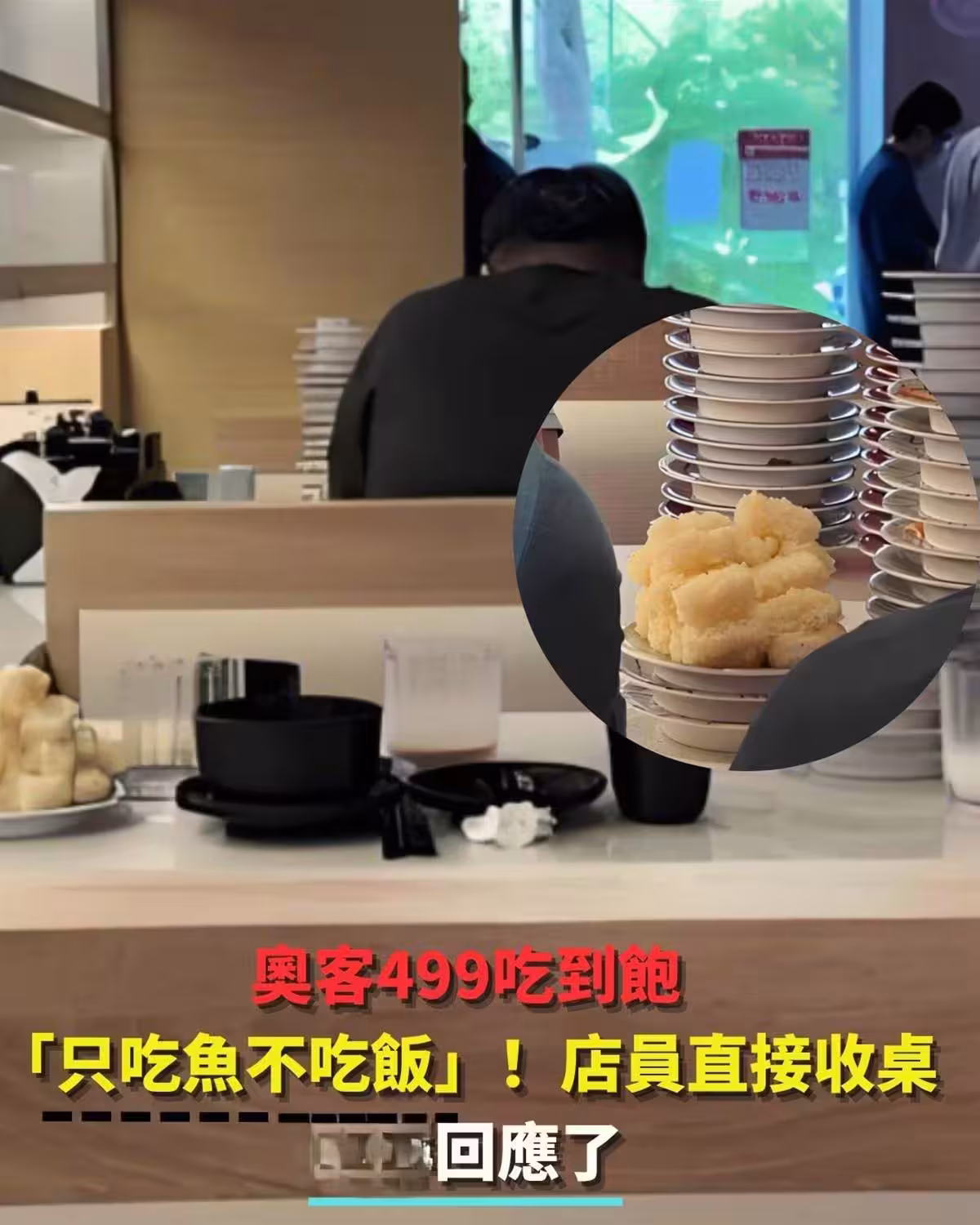 近日一間知名壽司吃到飽餐廳爆出爭議事件,一名顧客在499元壽司吃到飽活動中,堅持只吃魚、不吃飯,被現場店員勸導無效後,最終遭到直接收桌請離,引發現場其他客人側目,也在網絡上掀起熱議。