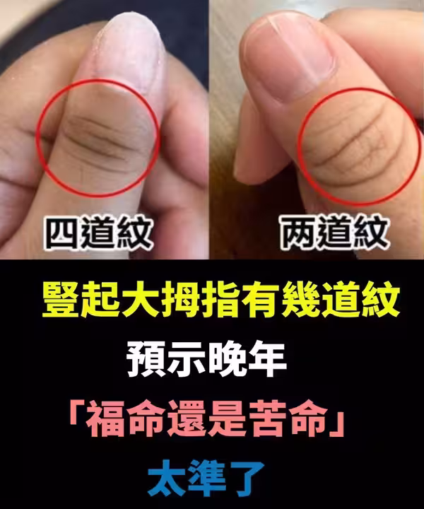 豎起大拇指有幾道紋,預示晚年「福命還是苦命」:太准了!