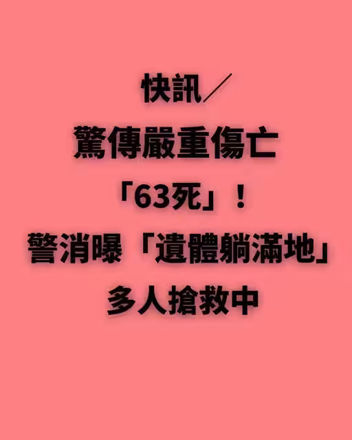 快訊/驚傳嚴重傷亡「63死」!警消曝「遺體躺滿地」多人搶救中!