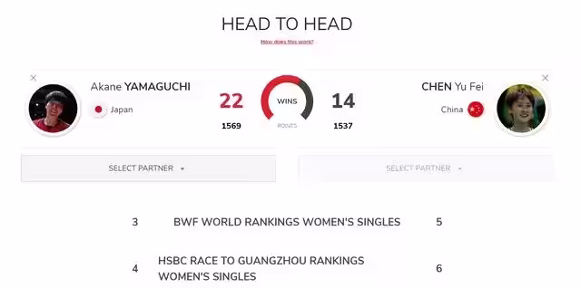 這場比賽後陳雨菲將與山口茜的交手記錄改寫為14勝22負,目前還是劣勢但陳雨菲正在縮小差距,陳雨菲女單半決賽的對手會是世界第一安洗瑩。