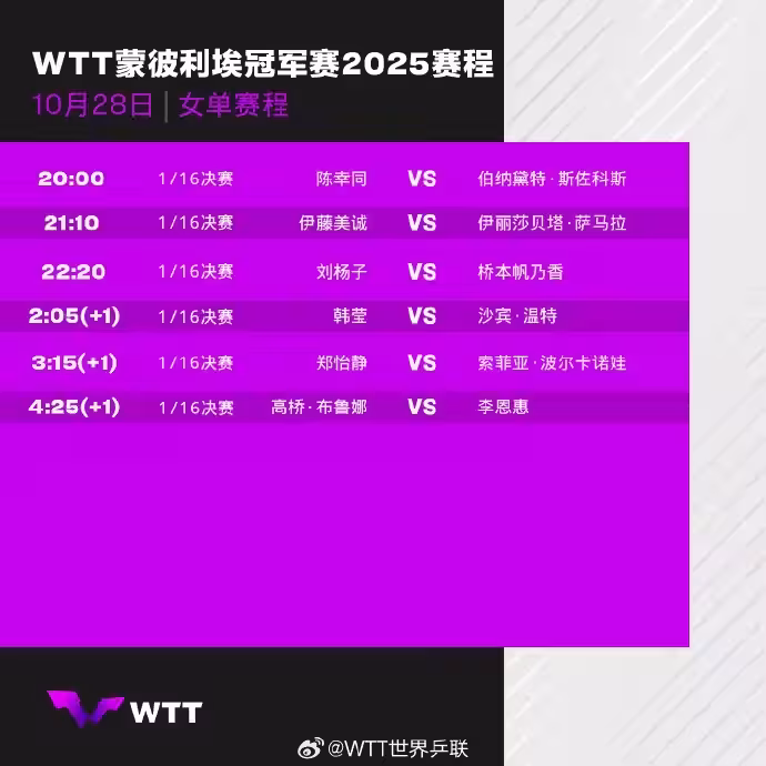 __CCTV5直播,20:00,陳幸同VS羅馬尼亞美女,王藝迪VS日本早田希娜