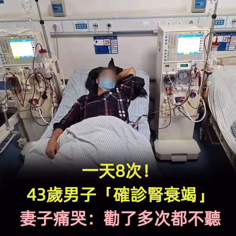 一天8次!43歲男子「確診腎衰竭」妻子痛哭:勸了多次都不聽