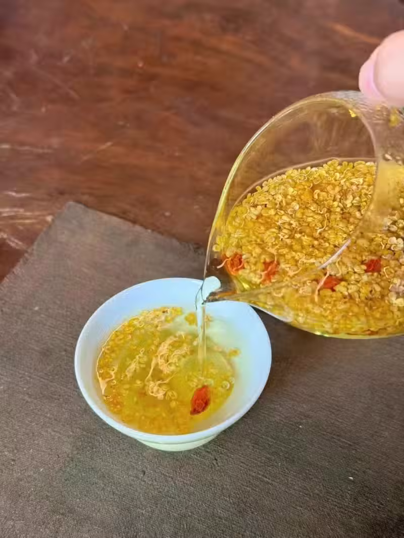 做法:把干桂花和枸杞放入杯中或茶壺中,用沸水沖泡即可