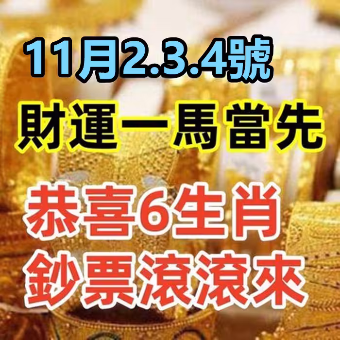 11月2.3.4號財運一馬當先,恭喜6生肖鈔票滾滾而來!