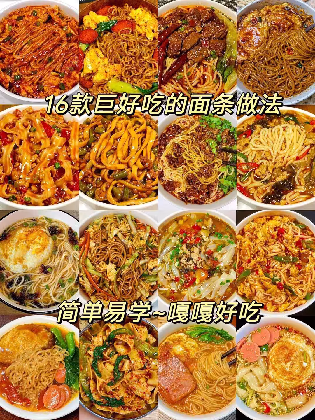 上邊的這16款麵條詳細做法請看下方圖片上的字哈~ 1、青椒雞蛋拌面