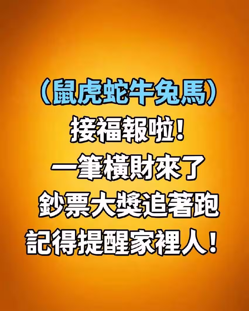 鼠虎蛇牛兔馬接福報:一筆橫財來了,鈔票大獎追著跑!記得提醒家裡人!!