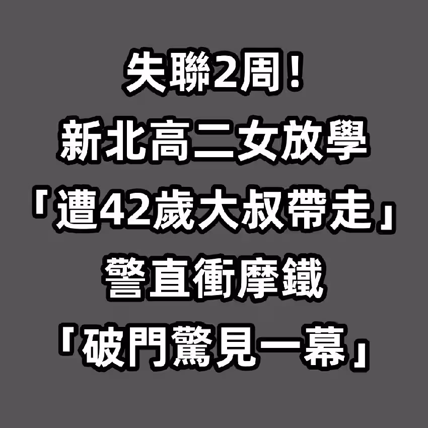 失聯2周! 新北高二女放學「遭42歲大叔帶走」 警直衝摩鐵「破門被驚呆了」