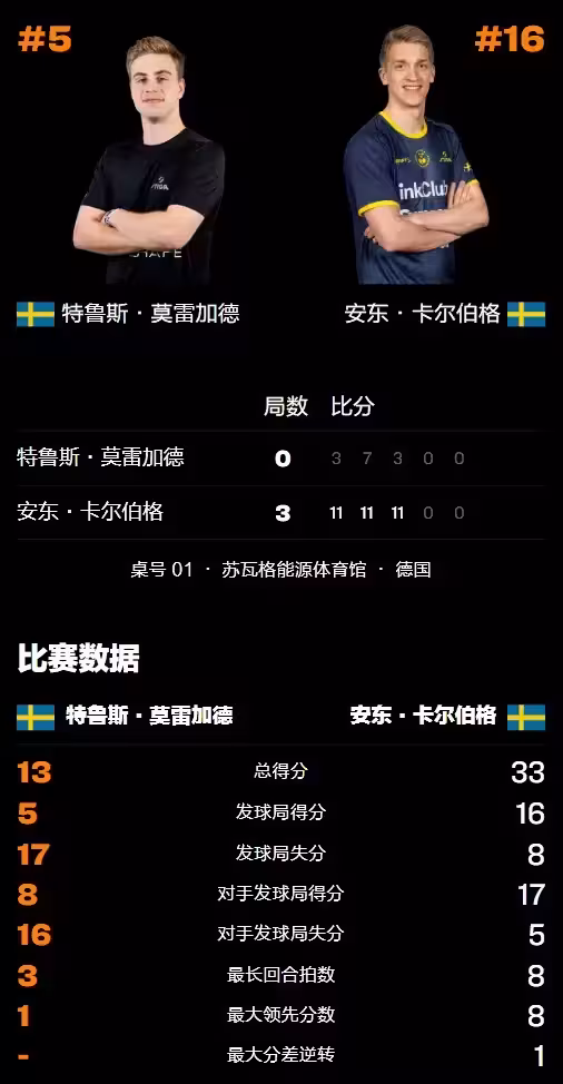 WTT冠軍賽大冷門!莫雷加德0:3慘敗一輪游,男單16強全部誕生