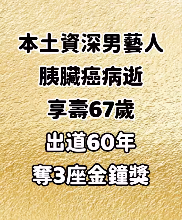 本土資深男藝人,胰臟癌病逝享壽67歲,出道60年奪3座金鐘獎
