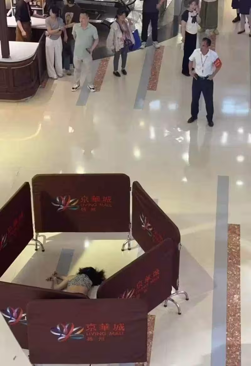 真的太可怕了!」百貨公司保全人員火速衝上前,迅速拉起圍欄封鎖現場,並緊急聯繫救護車。