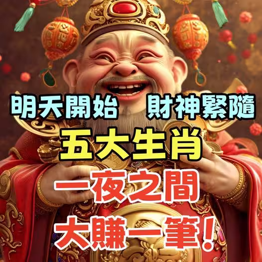 明天開始財神緊隨,五大生肖一夜之間大賺一筆