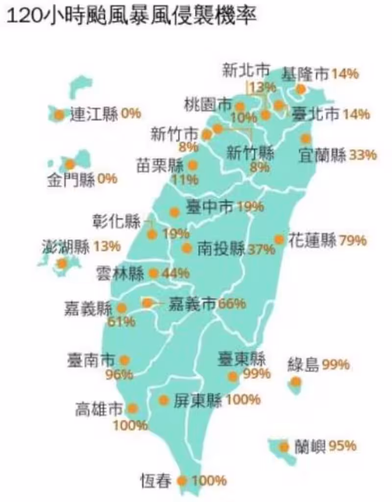 路徑顯示,颱風中心將通過台東與屏東一帶,南部及東部地區需嚴防強風、豪雨及可能引發的淹水、土石流等災情。