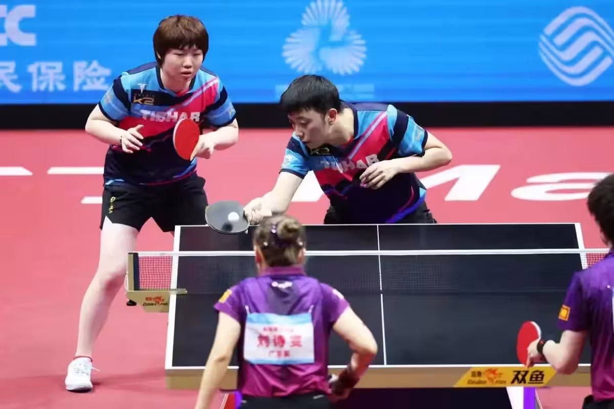 第六局陳垣宇/蒯曼開局3-1領先,通過速度和線路打開局面,林高遠和劉詩雯很能扛,發接發積極變化,很快4-3反超,隨後雙方打出了精彩的對抗,多拍強強對抗,打出了高級球,中局戰成6-6,後面陳垣宇出現失誤,局末廣東組合9-7領先,10-10時,劉詩雯轟直線很果斷,下一分劉詩雯反手加質量進攻,直接得分。