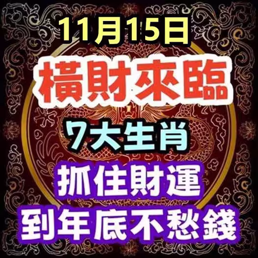 11月15日橫財來臨,7大生肖抓住財運,到年底不愁錢