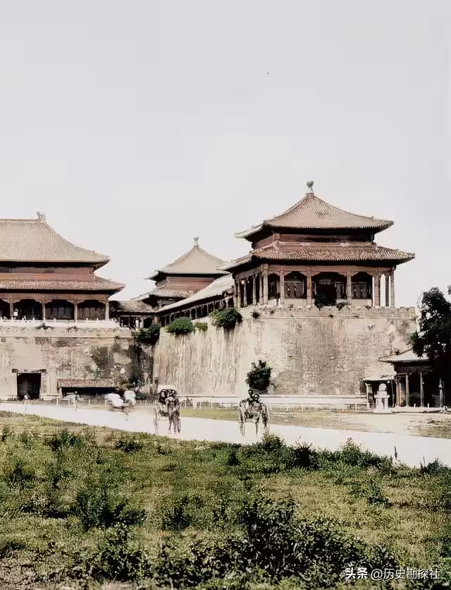 1901年,日本人拍攝的紫禁城,滿目淒涼,太監站在雜草中發獃