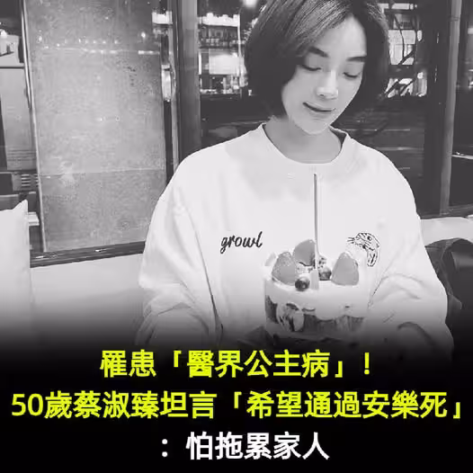 知名女星認罹「醫界公主病」消失1年!苦盼「台灣通過安樂死」病況曝光「坦承怕拖累家人」喊話老後堅持不賴活