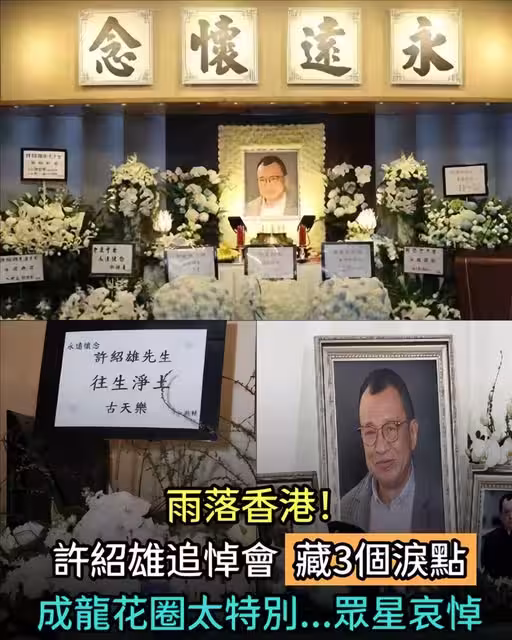 雨落香港!許紹雄追悼會藏3個淚點,成龍花圈太特別,眾星哀悼