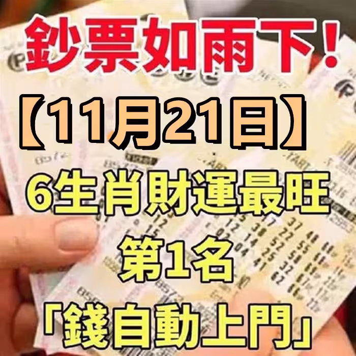 恭喜了7大生肖,在未來三天( 11月20~23日)即將有一筆橫財,準備好收錢吧