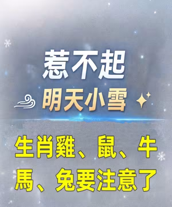 「 惹不起 」 明天小雪 生肖雞、鼠、牛、馬、兔要注意了!