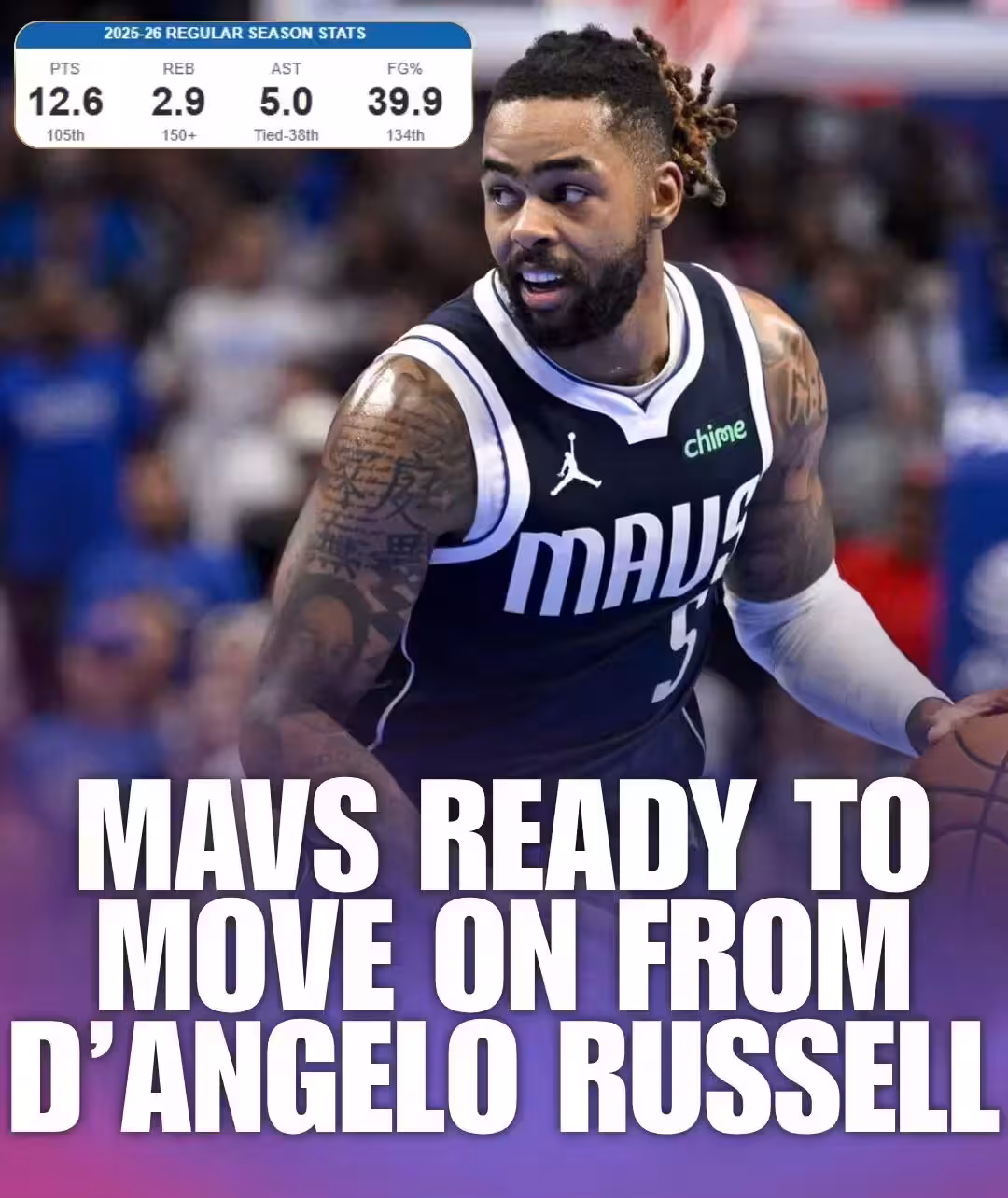 截止目前為止,拉塞爾一共為獨行俠出戰16場比賽,場均上場22.2分鐘,得到12.6分2.9籃板5.0助攻,出現2.4次失誤,三項命中率39.9%/25.6%/69.6%,真實命中率僅為49.8%,生涯最低。