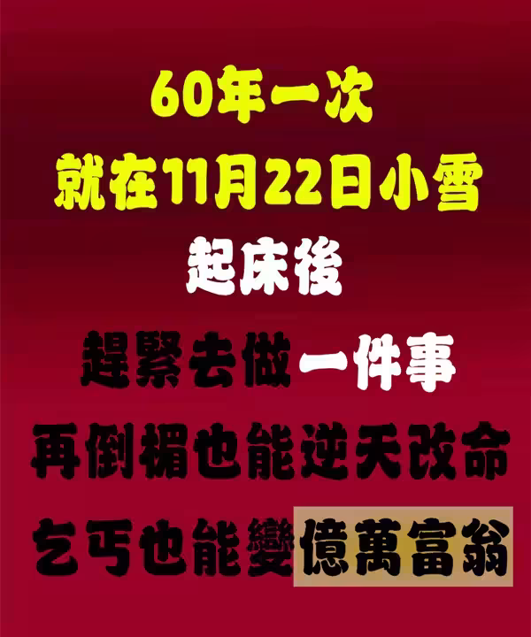 60年一次,就在11月22日「小雪」 起床後趕緊去做一件事,再倒楣也能逆天改命!乞丐也能變億萬富翁!