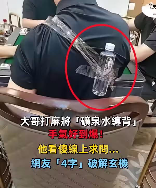 大哥打麻將「礦泉水纏背」手氣好到爆!他看傻線上求問…網友「4字」破解玄機