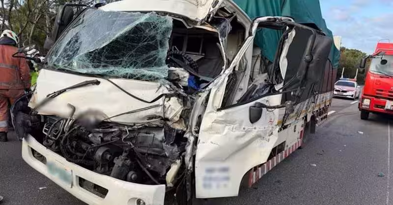 死亡交通事故就發生在國道一號南下107公里新竹寶山路段,昨日下午接近3點多,一輛小貨車行駛到一半,左後輪不明原因脫落往後彈,砸中後方遊覽車前保杆。司機嚇得踩剎車,後方接連兩台大貨車閃避不及,當場撞上釀成4車連環撞。最後方的64歲大貨車莊姓駕駛夾困車內,送醫後宣告不治。