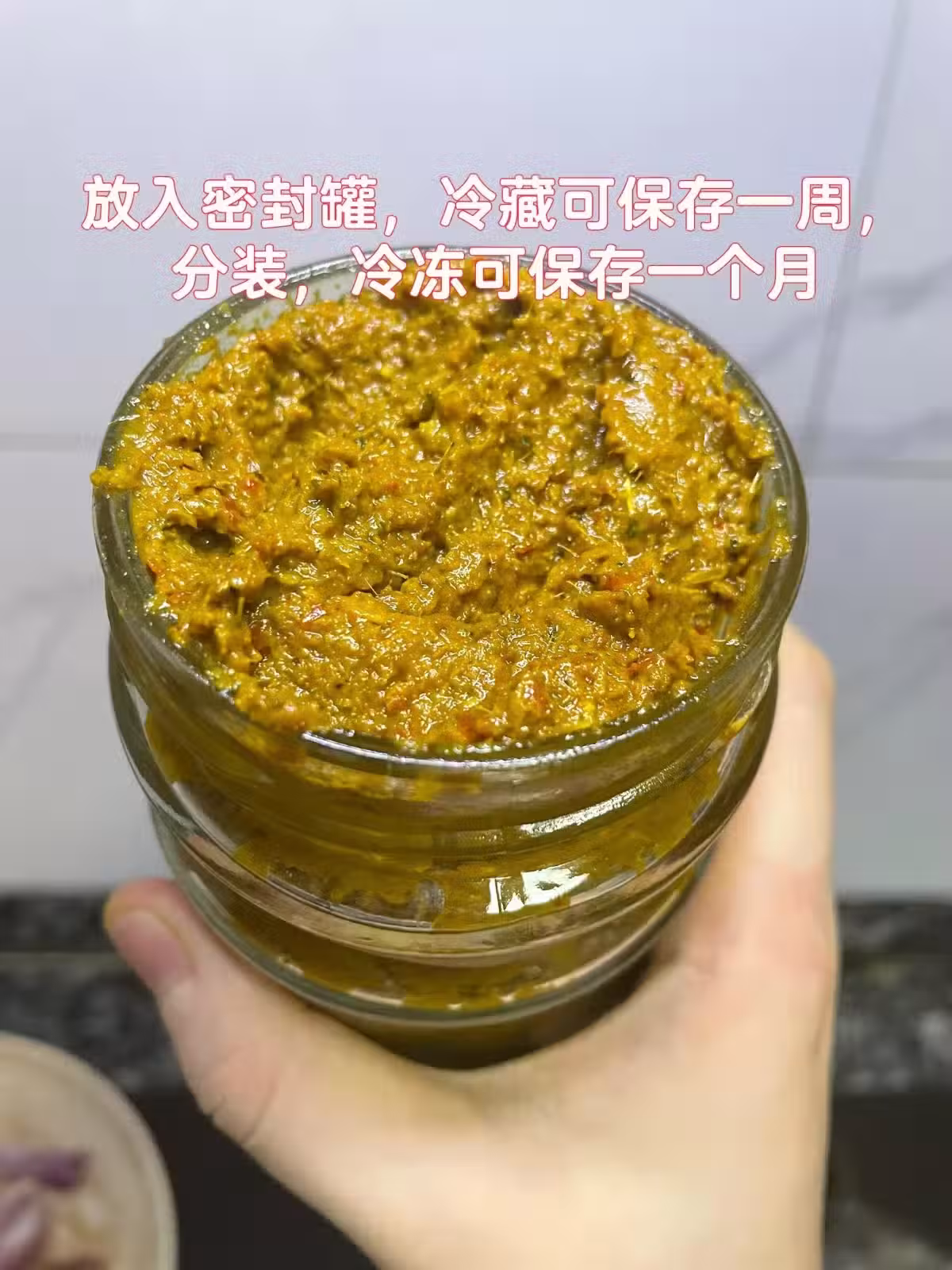 乾料:薑黃/薑黃粉20g,小茴香12g,香菜籽25g,白鬍椒粒5g,孜然10g,蝦膏15g(干香料需要烘烤以後攪打)