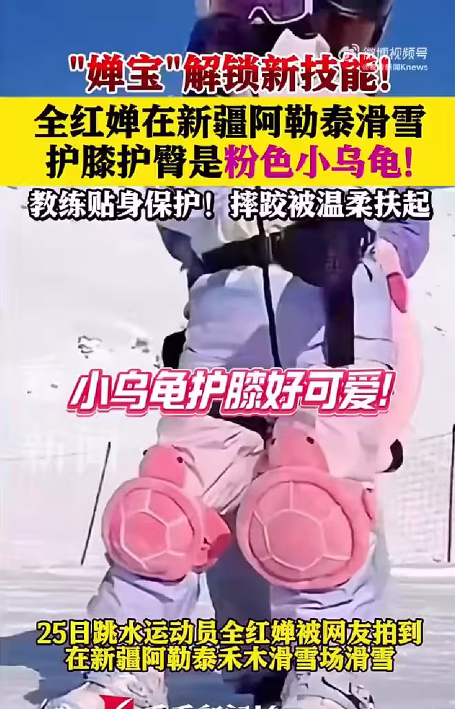 享受人生!全紅嬋阿勒泰滑雪休整放鬆,戴粉紅烏龜護膝護腰真的好可愛