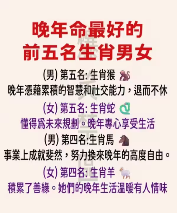 👨‍🦰 晚年命最好的 5 個生肖男,看看有沒有你