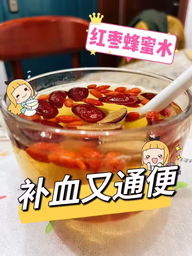 📚紅棗,枸杞,蜂蜜水一起的作用可以補血滋陰,同時有通便的效果。