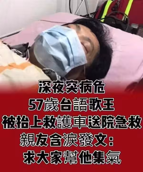 深夜突病危,57歲台語歌王被抬上救護車,送院急救親友含淚發文: 求大家幫他集氣.